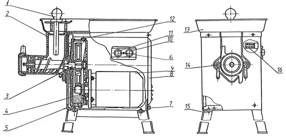 | МИМ-600.01.000 | Собственно мясорубка в составе: корпус мясорубки, шнек, гайка зажимная, нож двусторонний (2 шт.), нож подрезной, решетка №2, решетка №3, кольцо упорное, втулка | | 1 |