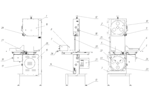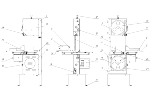10 – шкив ведомый; 11 – шкив ведущий; 12 – гайка; 13 - опора; 14 - лоток; 15 – щиток электродвигателя;16 - крышка;