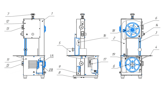 14 - кнопка «Пуск»-«Стоп»; 15 -плавкая вставка; 16 - полотно пилы ленточное;