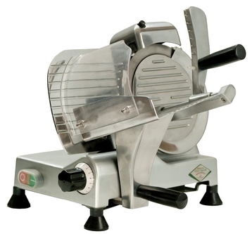 Нарезаемый продукт кладется на лоток и закрепляется с помощью прижимного устройства. Слайсер обеспечивает быструю и точную нарезку ломтиков заданной толщины, оснащен встроенной точилкой для ножа. Для безопасного использования слайсера дисковый нож помещен в защитный кожух. Конструкция машины обеспечивает легкое и плавное перемещение подающего лотка. Литое основание. Дисковый нож выполнены из нержавеющей стали. Энергосберегающий мотор с охлаждающим вентилятором, водостойкий выключатель обеспечивают установленные меры безопасности.