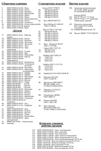ЗАПАСНЫЕ ЧАСТИ ДЛЯ МАШИН МПР-350М